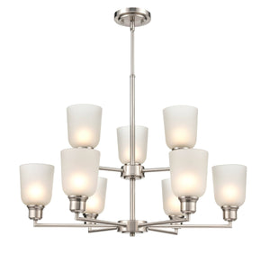 9 Lamps Strayhan Chandelier - Brushed Nickel - Clear Glass - 28.5in Diameter - E26 Medium Base