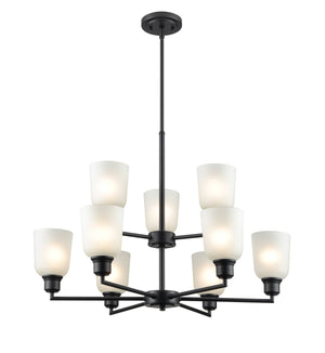 9 Lamps Ivey Lake Chandelier - Matte Black - Etched White Glass - 25.25in Diameter - E26 Medium Base