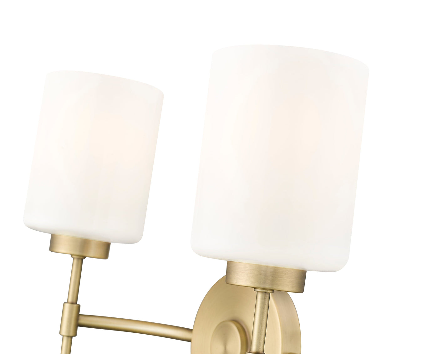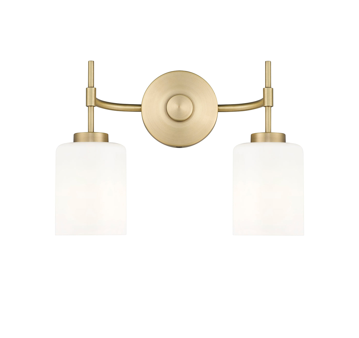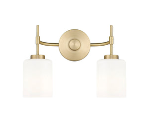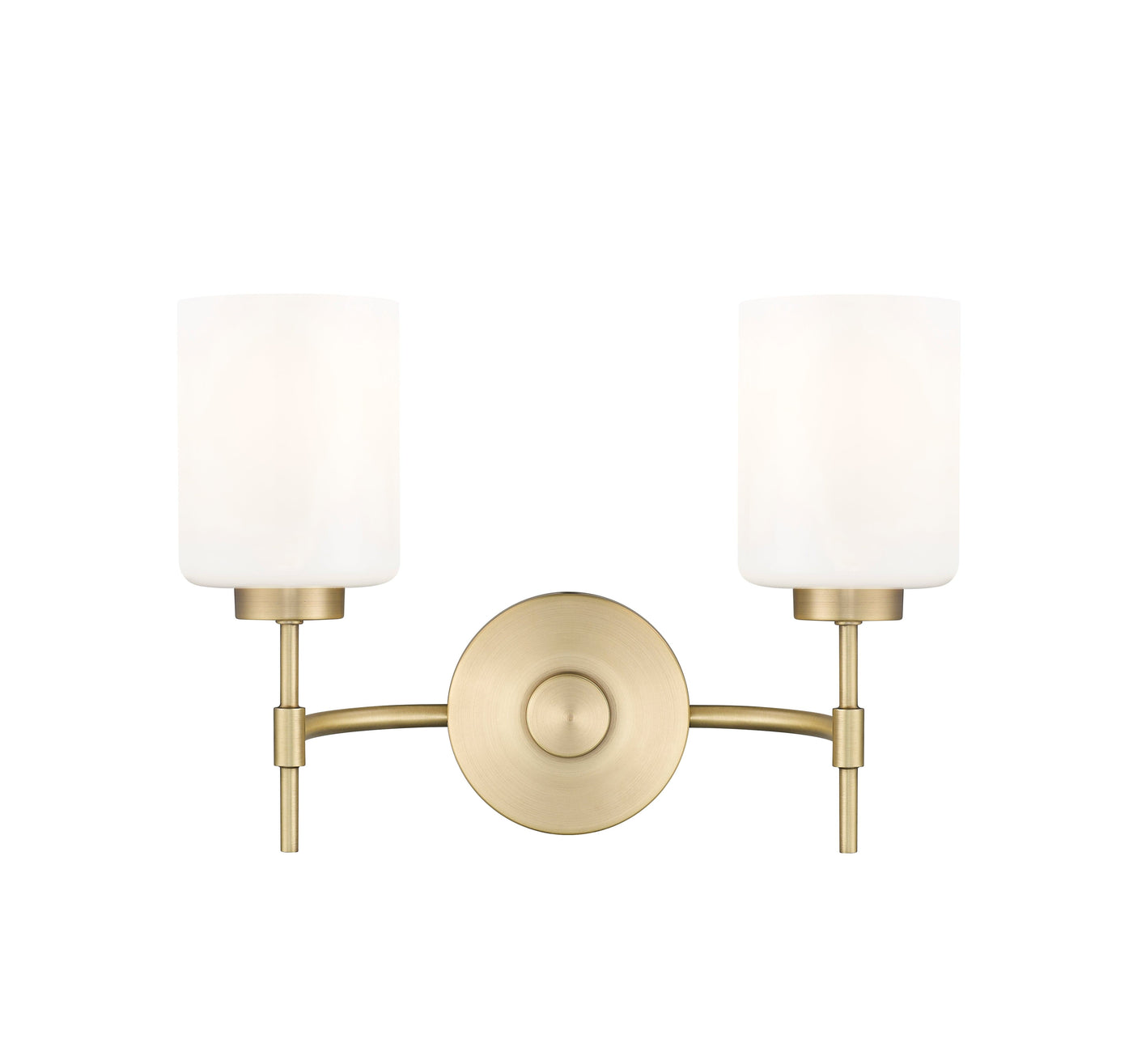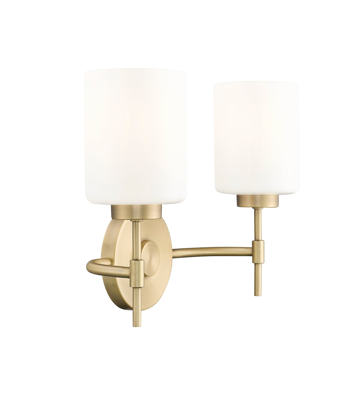 2 Lamps Keylee Vanity Light - Vintage Brass - Glossy Opal White Glass - 15.5in. Wide
