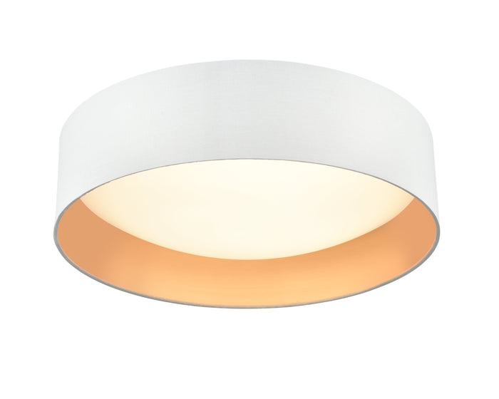 25W Rosata LED Flush Mount Fixture - White - White Fabric - 16in. Diameter - 3000K Warm White