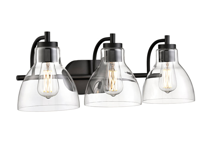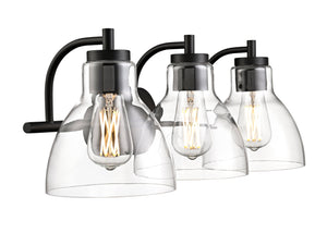 3 Lamps Knightsdale Vanity Light - Matte Black - Clear Glass - 25.25in. Wide