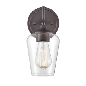 Ashford Wall Sconce - Rubbed Bronze - Clear Glass - 6.5in. Extension - E26 Medium Base