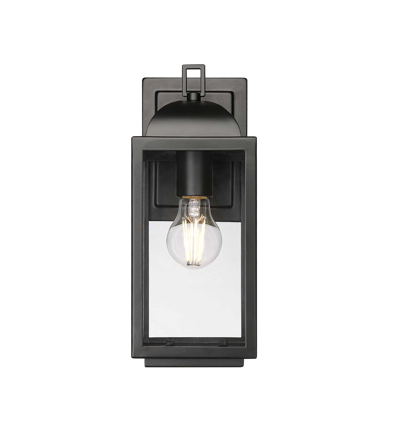 Beaufort Outdoor Wall Sconce - Powder Coated Black - Clear Glass - 6in. Extension - E26 Medium Base