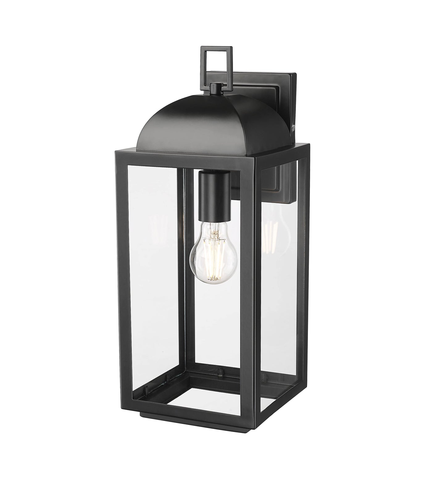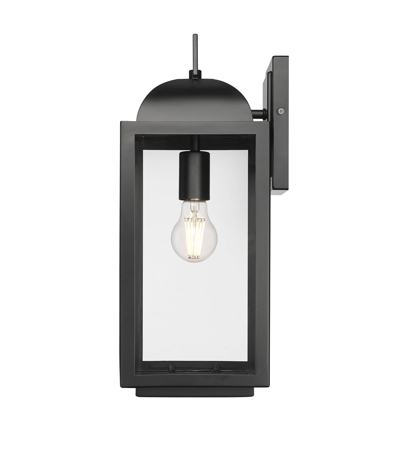 Beaufort Outdoor Wall Sconce - Powder Coated Black - Clear Glass - 8in. Extension - E26 Medium Base