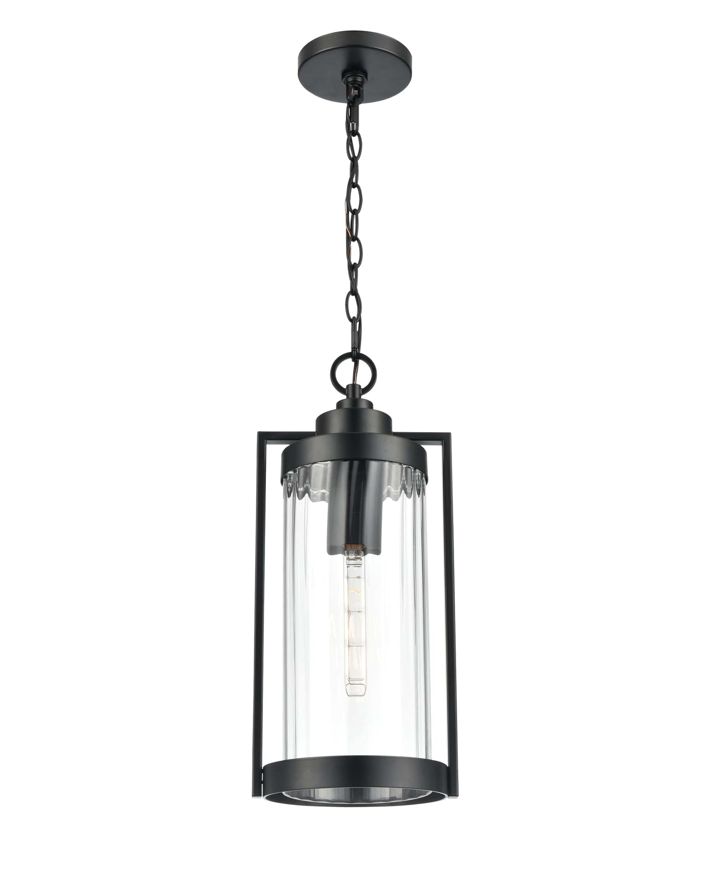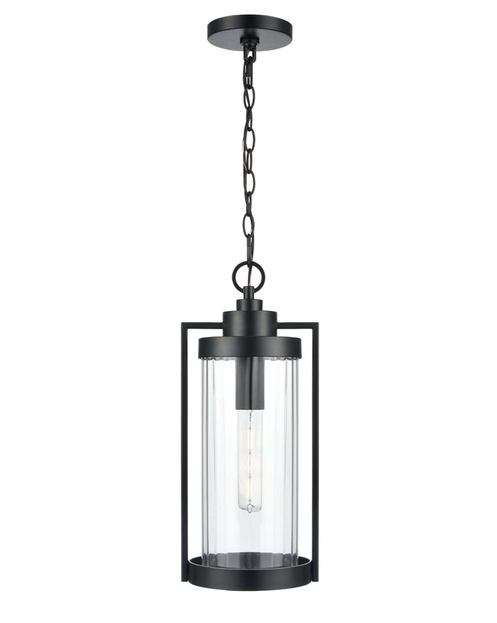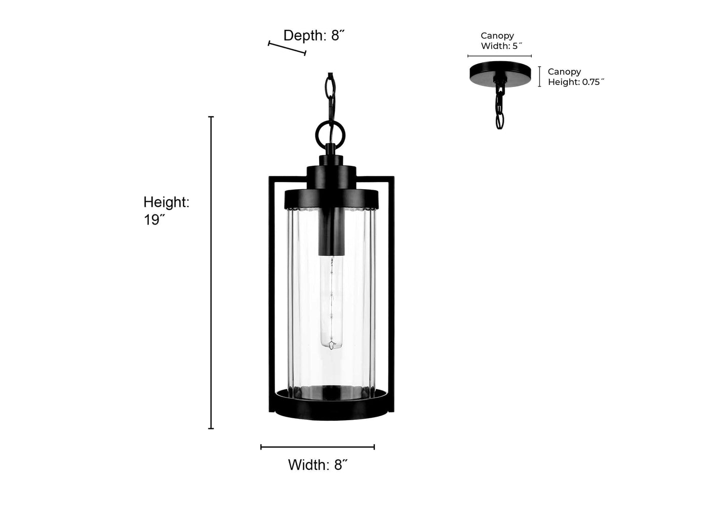 Braselton Outdoor Hanging Lantern - Powder Coated Black - Clear Ribbed Glass - 8in. Diameter - E26 Medium Base