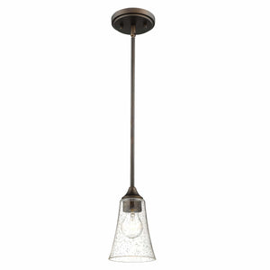 Natalie Mini-Pendant - Rubbed Bronze - Clear Seeded Glass - 5in. Diameter - E26 Medium Base