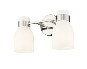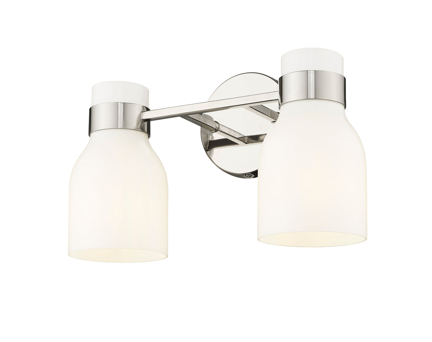2 Lamps Corella Vanity Light - Polished Nickel - Opal Shiny Glass - 14in. Wide