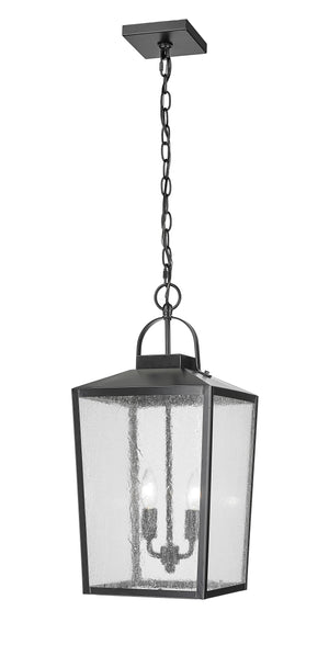Devens Outdoor Hanging Lantern - Powder Coated Black - Clear Seeded Glass - 10in. Diameter - E12 Candelabra Base