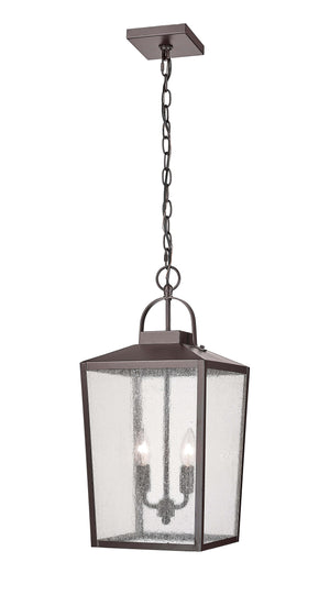 Devens Outdoor Hanging Lantern - Powder Coated Bronze - Clear Seeded Glass - 10in. Diameter - E12 Candelabra Base