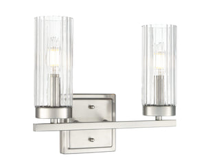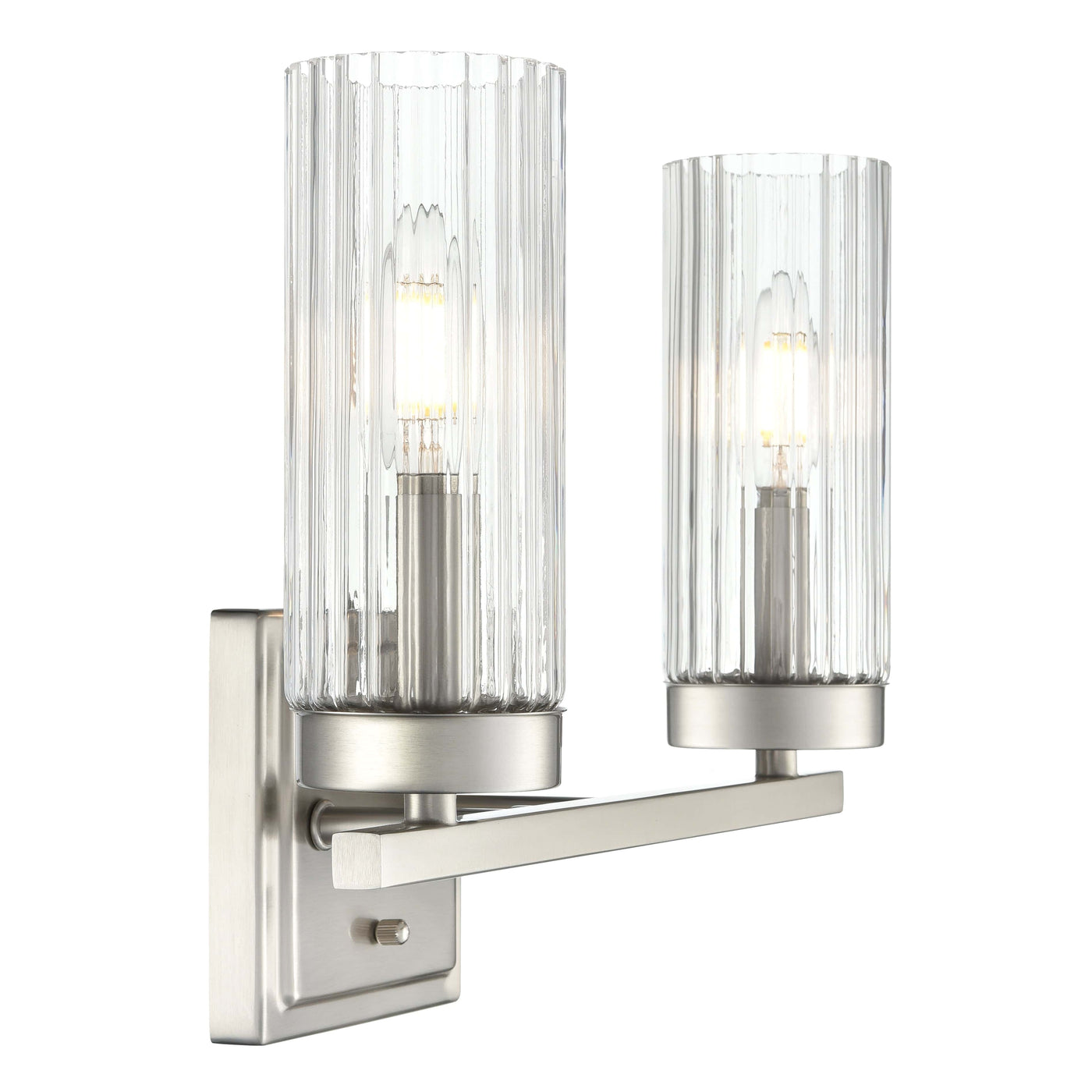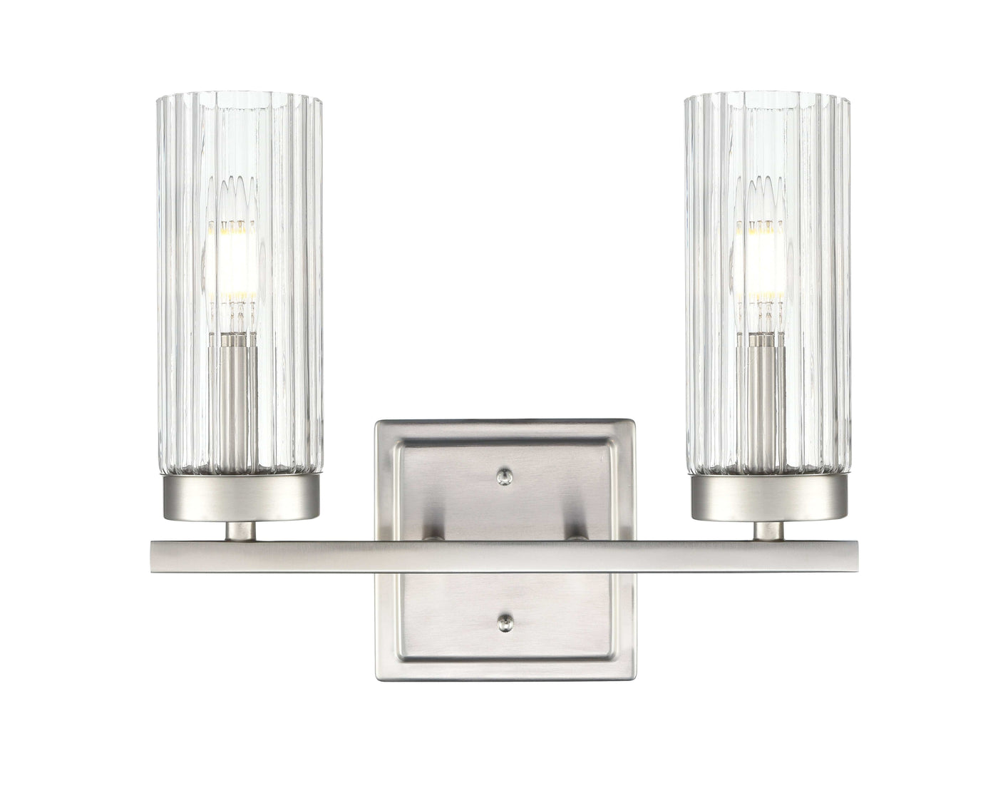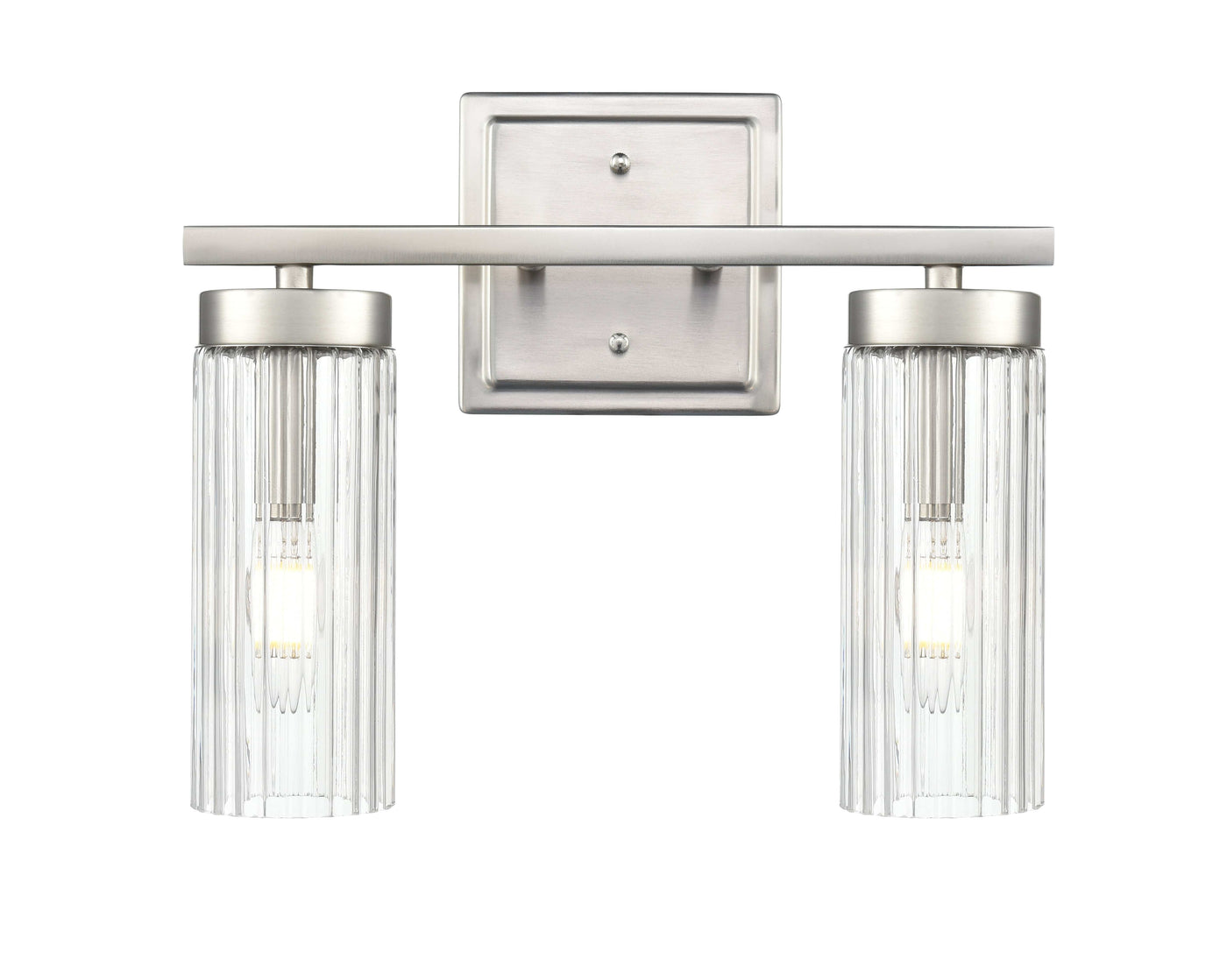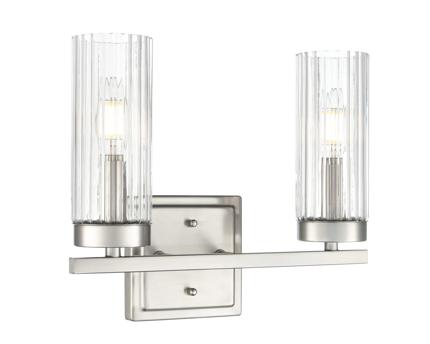 2 Lamps Iversen Vanity Light - Brushed Nickel - Clear Reeded Glass - 12.5in. Wide
