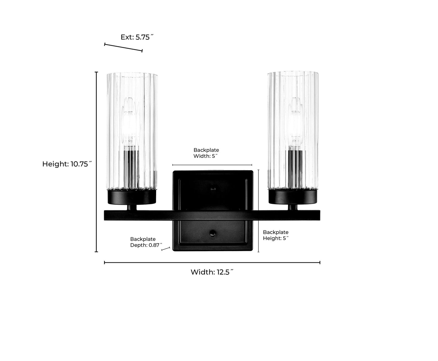 From the square backplate with inset design, to the sparkling clear reeded glass shades, the result is a dazzling play of light perfect for bath or hallway.