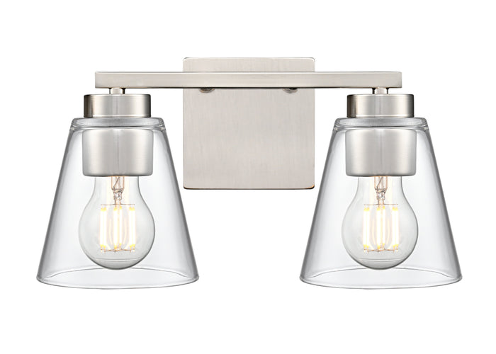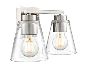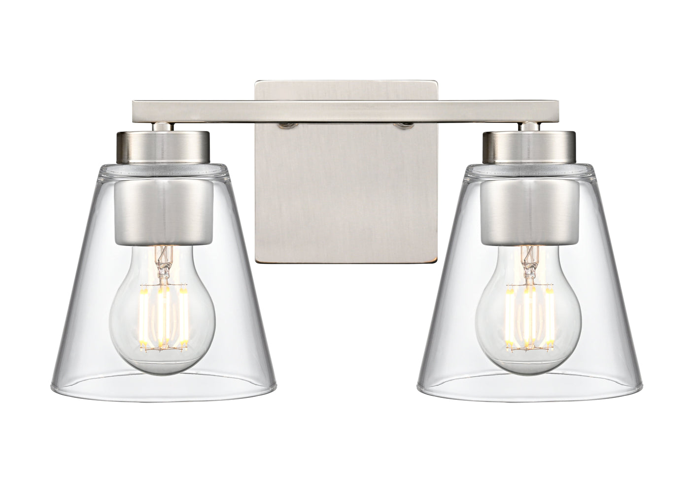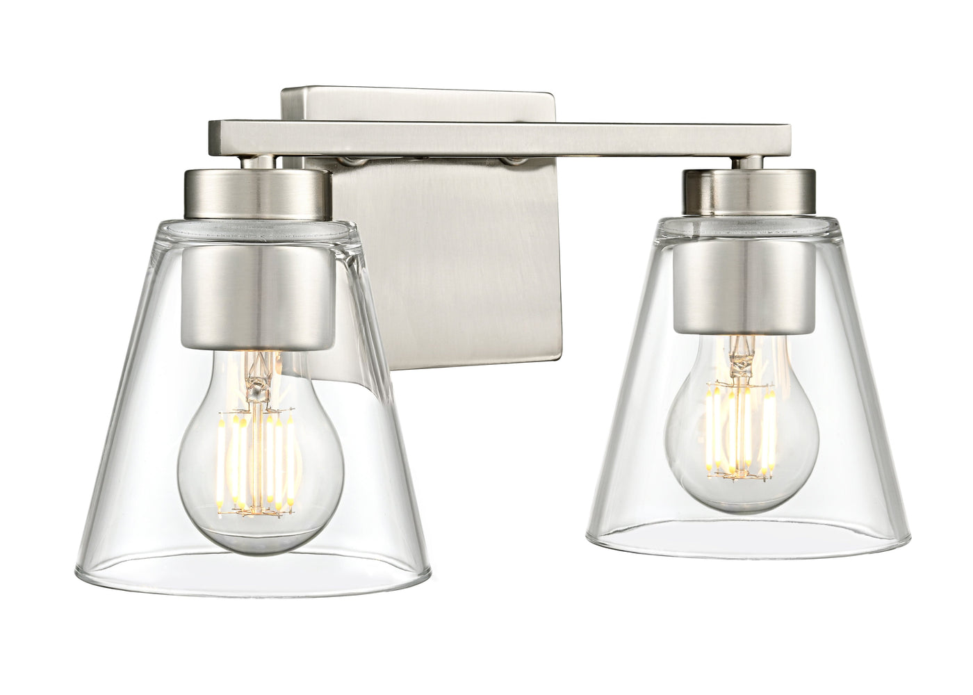2 Lamps Strayhan Vanity Light - Brushed Nickel - Clear Glass - 13in. Wide