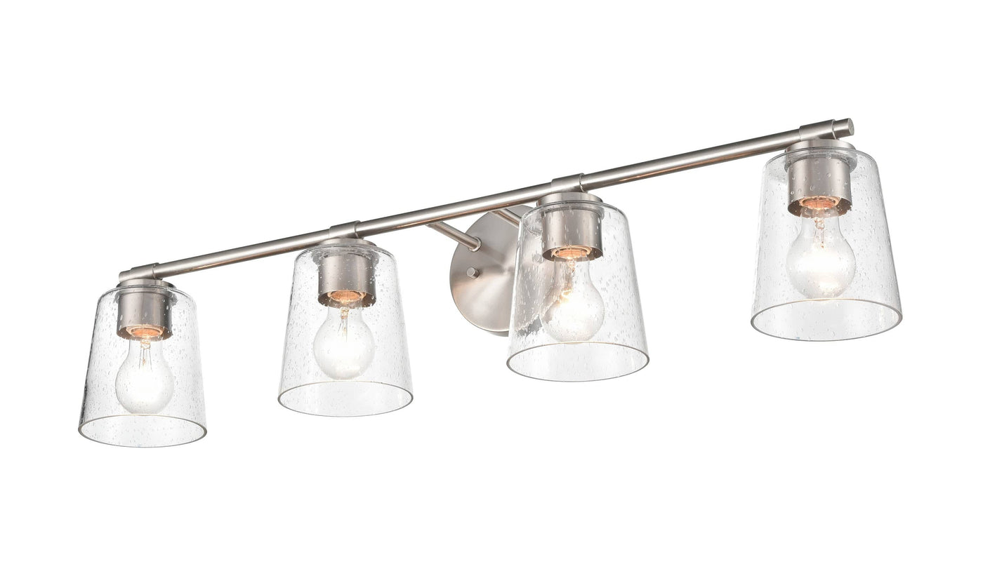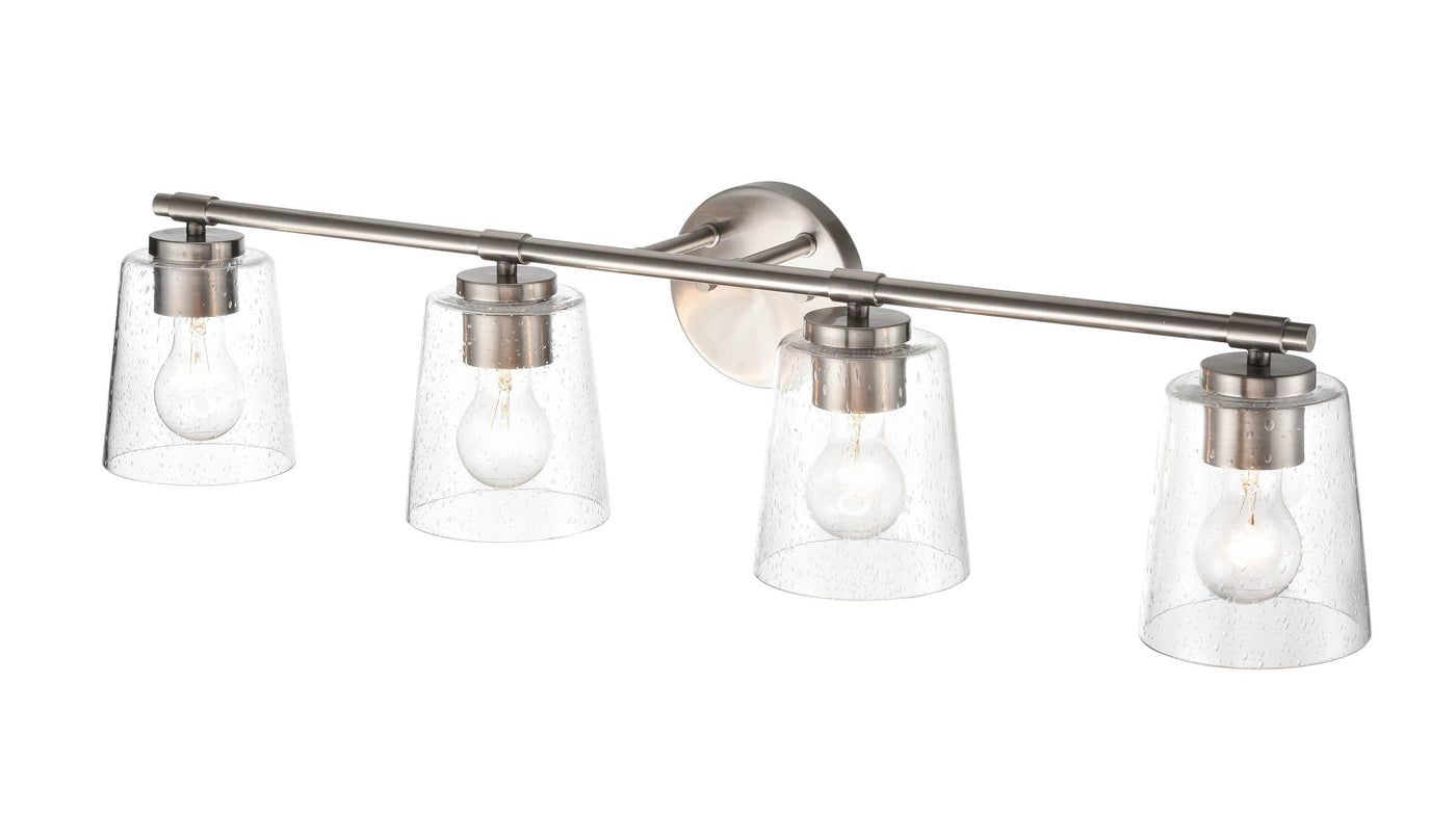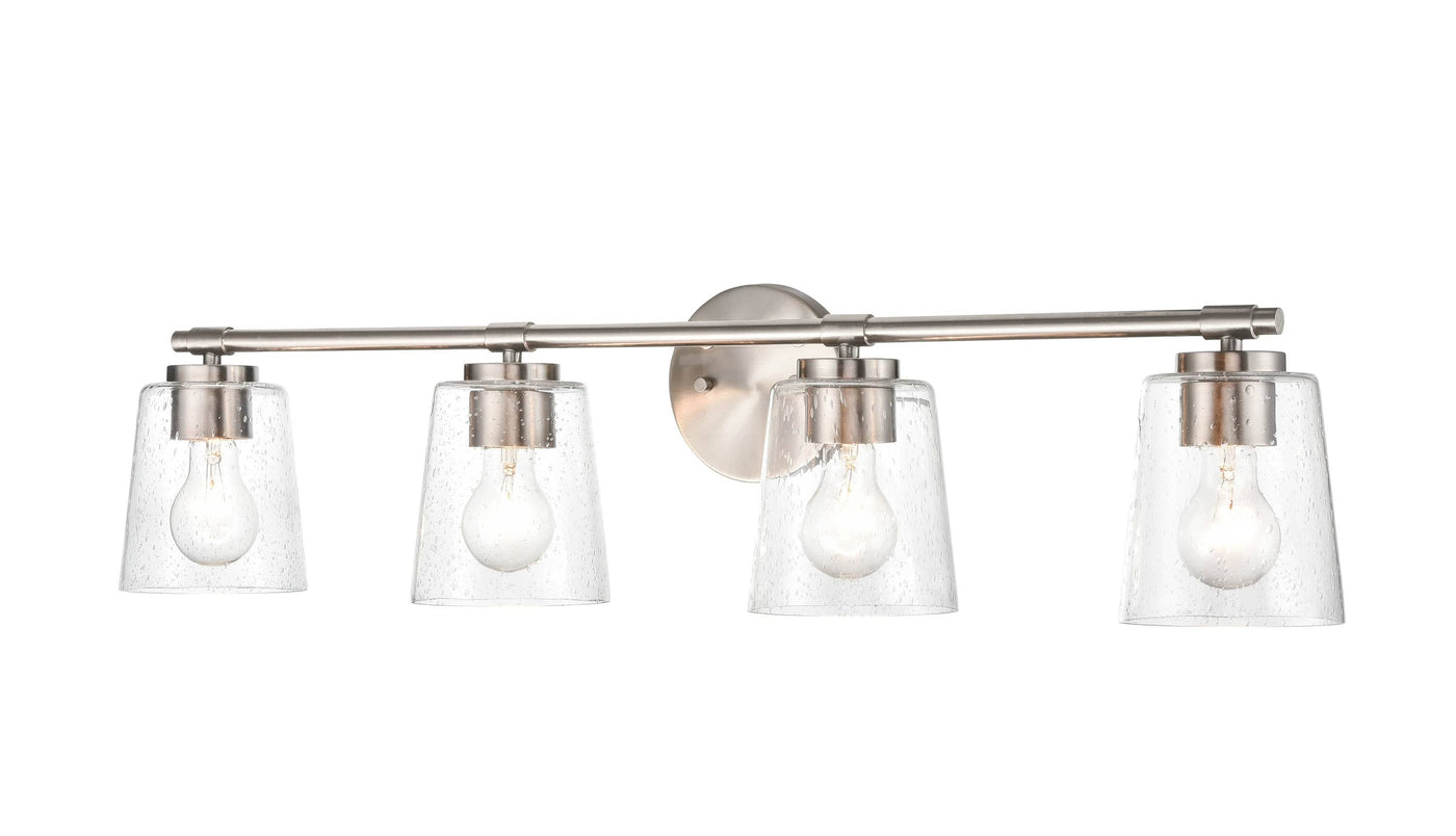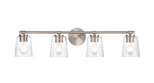 4 Lamps Bathroom Vanity Light - Brushed Nickel - Clear Seeded Glass - 34in. Wide