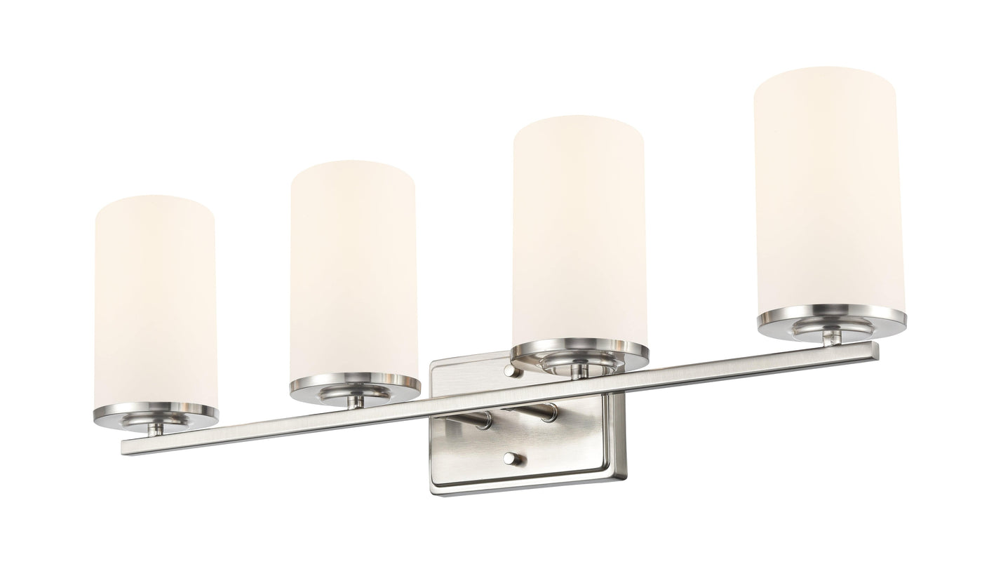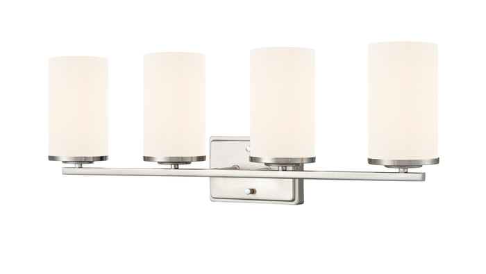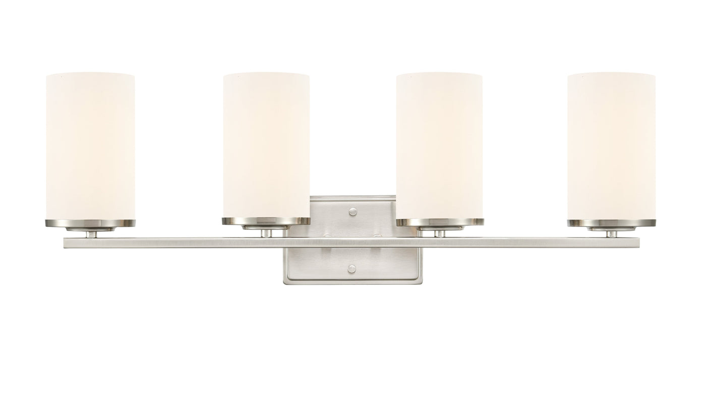 4 Lamps Verlana Vanity Light - Brushed Nickel - Etched White Glass - 27.75in. Wide