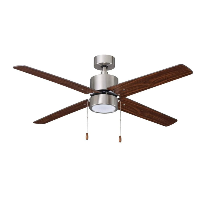 Aldea 4-Blade Indoor Ceiling Fan - Brushed Nickel Finish - Walnut Blade - 52in. Sweep - 16W Integrated LED Module