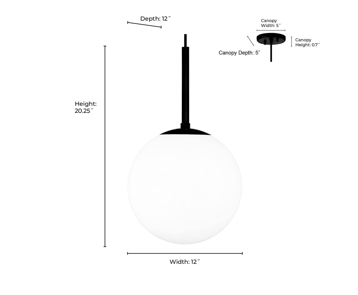 Kairo Pendant Fixture - Brushed Nickel - Shiny Opal Glass - 12in. Diameter - E26 Medium Base