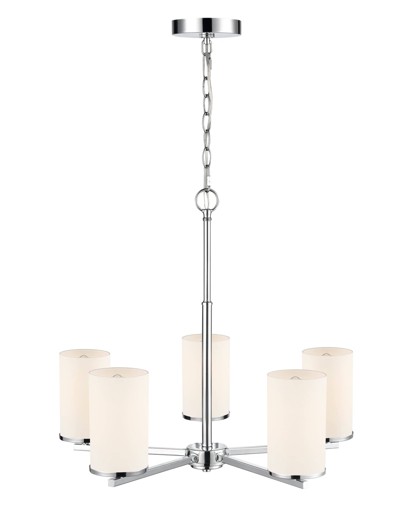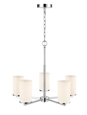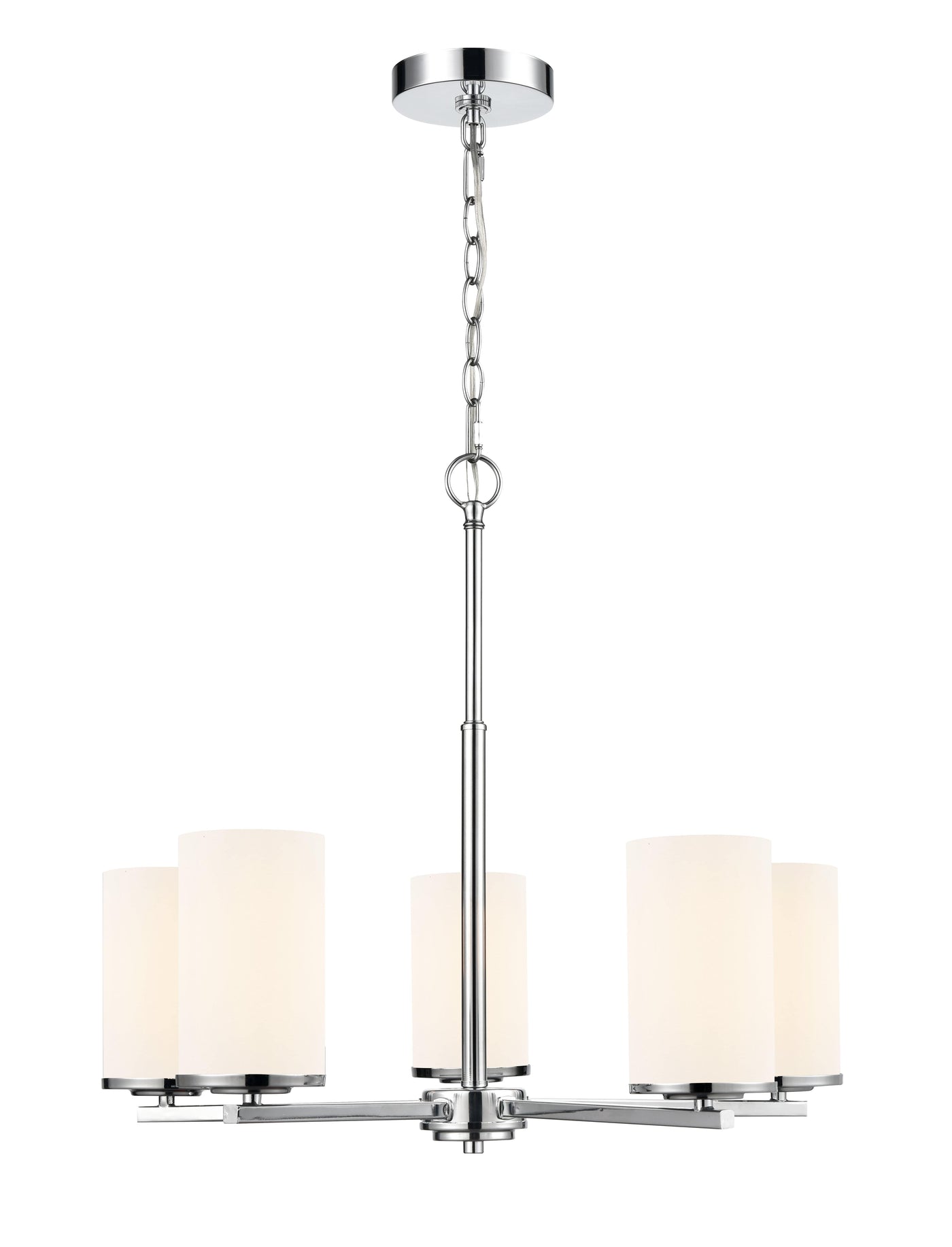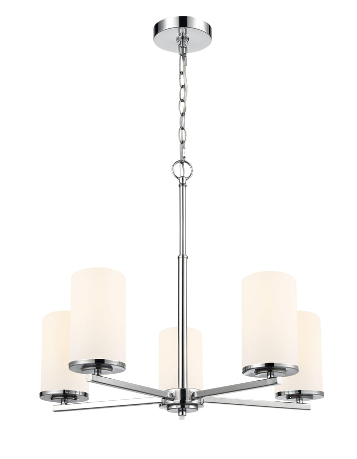 5 Lamps Verlana Chandelier - Chrome - Etched White Glass - 24in Diameter - E26 Medium Base
