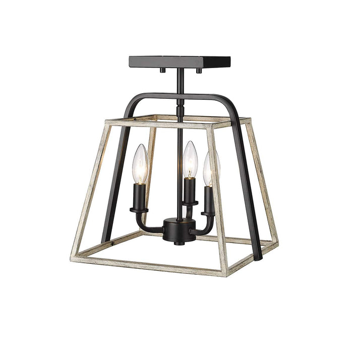 Bonnie Semi-Flush Mount Fixture - Matte Black and Grey Wood - 11.25in. Diameter - E12 Candelabra Base
