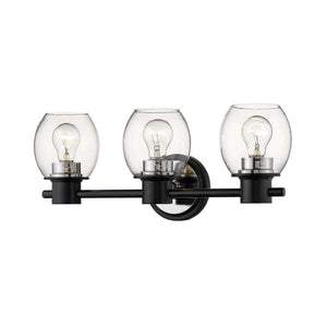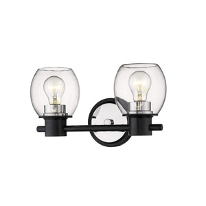 2 Lamps Bathroom Vanity Light - Matte Black / Polished Nickel - Clear Glass - 14in. Wide