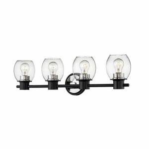 4 Lamps Bathroom Vanity Light - Matte Black / Polished Nickel - Clear Glass - 32in. Wide