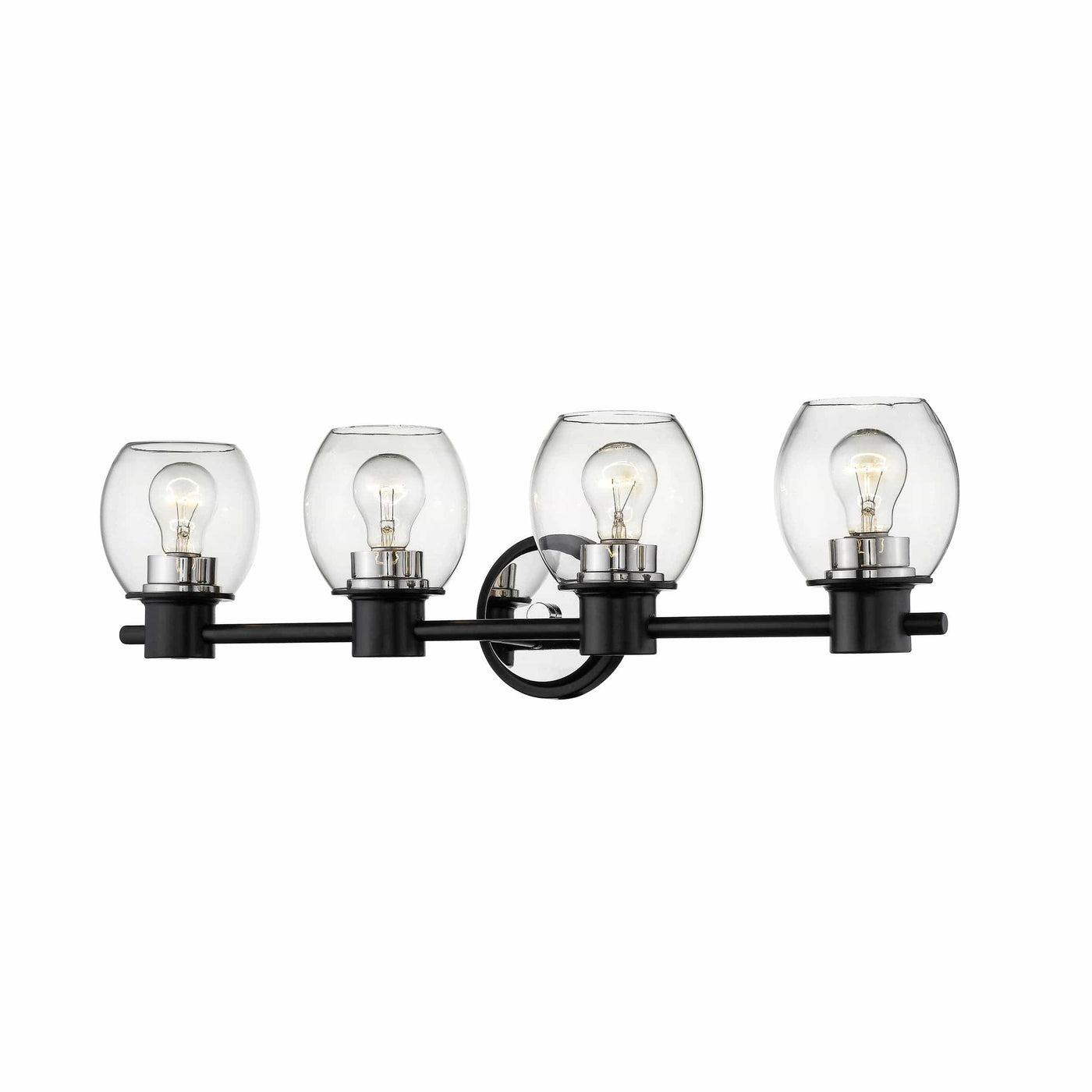 4 Lamps Bathroom Vanity Light - Matte Black / Polished Nickel - Clear Glass - 32in. Wide