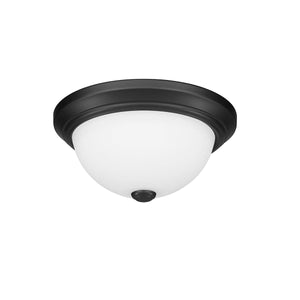 Flush Mount Fixture - Matte Black - Etched White Glass - 11in. Diameter - E26 Medium Base
