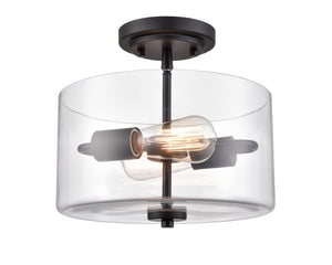 Asheville Semi-Flush Mount Fixture - Matte Black - Clear Glass - 11in. Diameter - E12 Candelabra Base