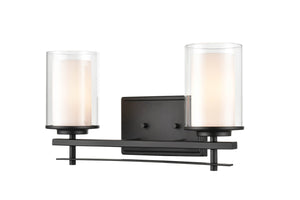 2 Lamps Huderson Vanity Light - Matte Black - Clear Out / Etched White Inside Glass - 16in. Wide