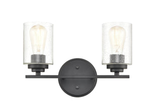 2 Lamps Caily Vanity Light - Matte Black - Clear Seeded Glass - 15.75in. Wide
