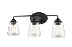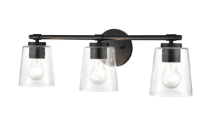 3 Lamps Caily Vanity Light - Matte Black - Clear Seeded Glass - 24in. Wide