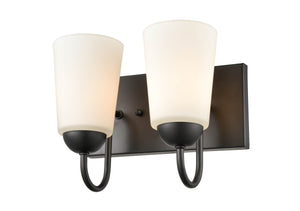 2 Lamps Ivey Lake Vanity Light - Matte Black - Etched White Glass - 10in. Wide