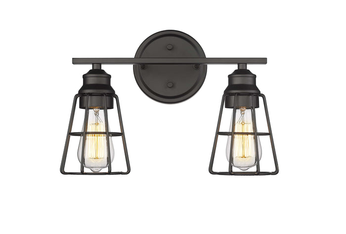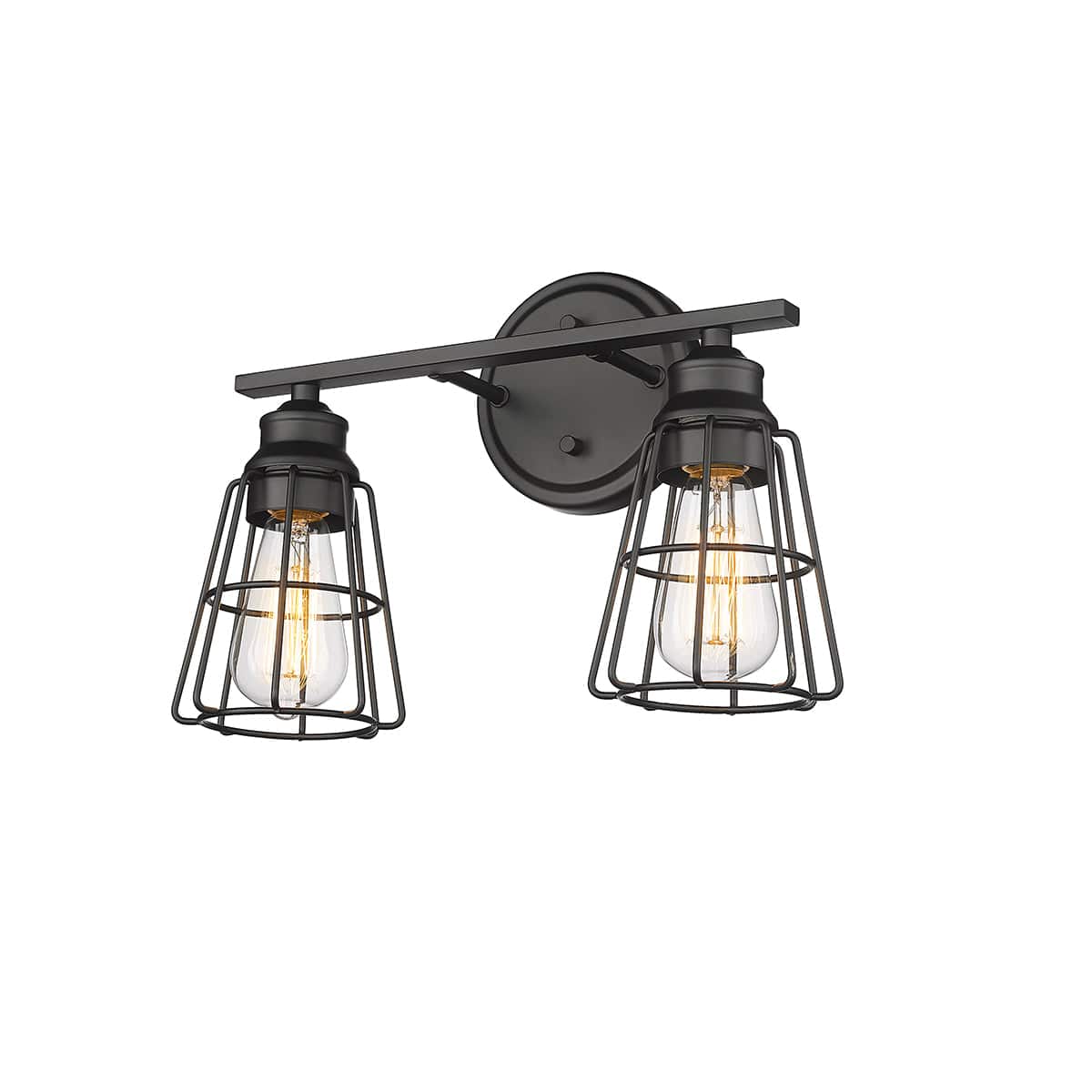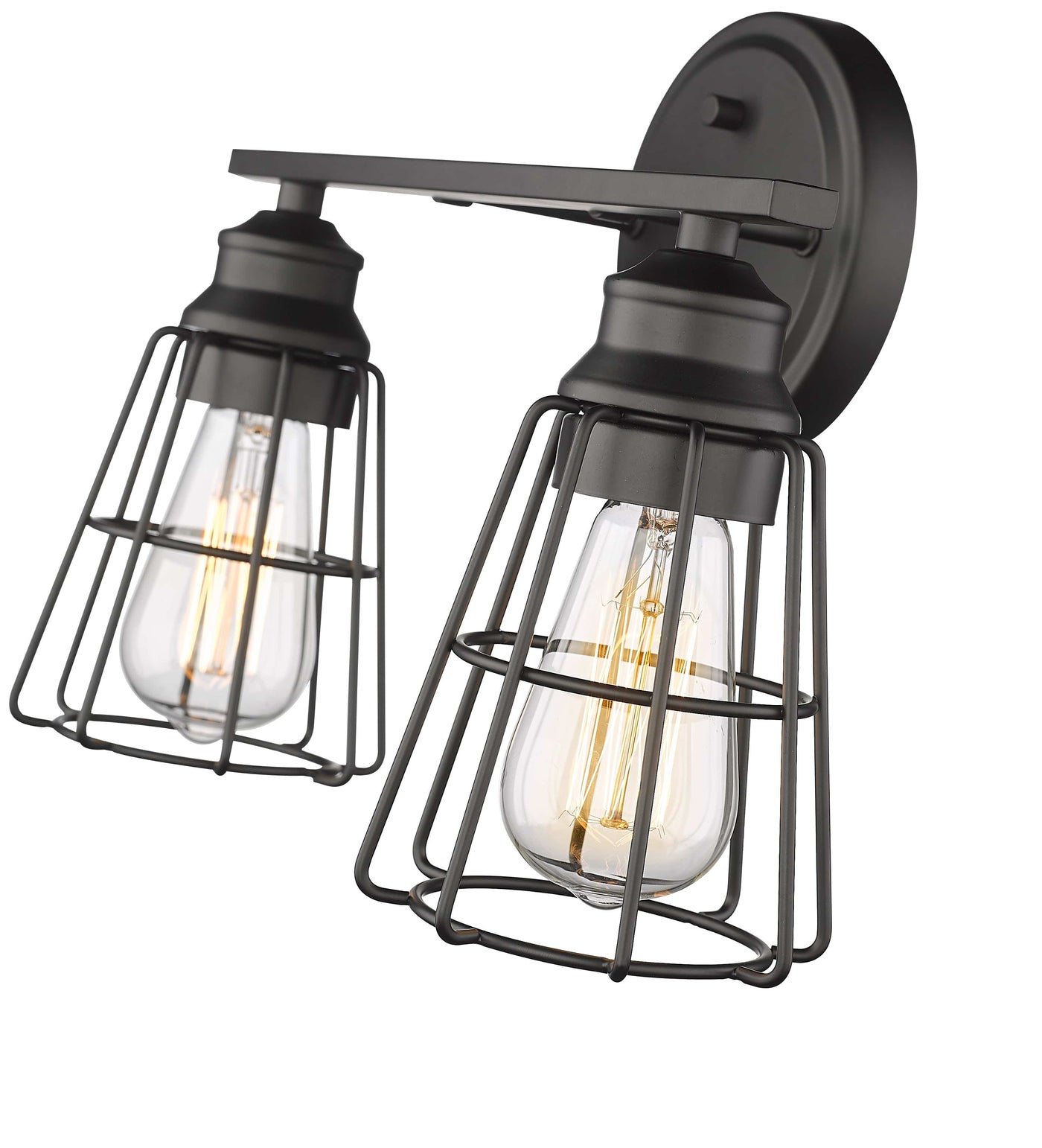 2 Lamps Vanity Light - Matte Black - Wire Guard - 15.25in. Wide