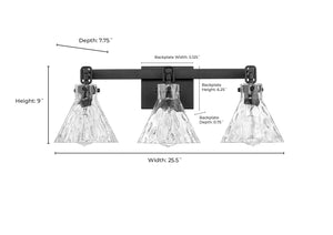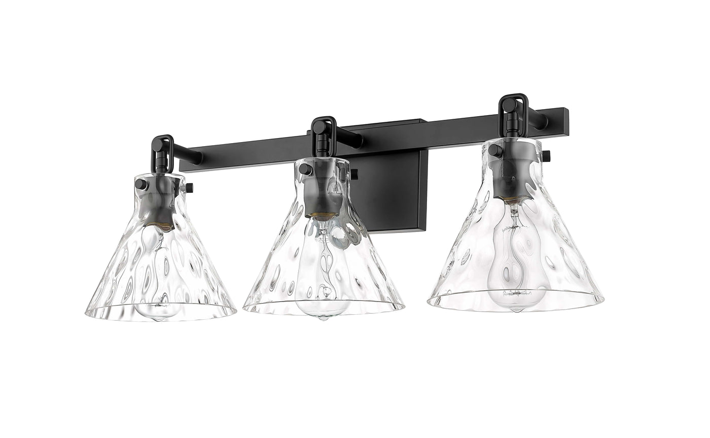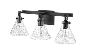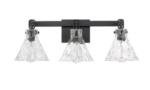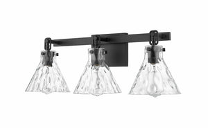 3 Lamps Barlon Vanity Light - Matte Black - Clear Water Glass - 25.5in. Wide