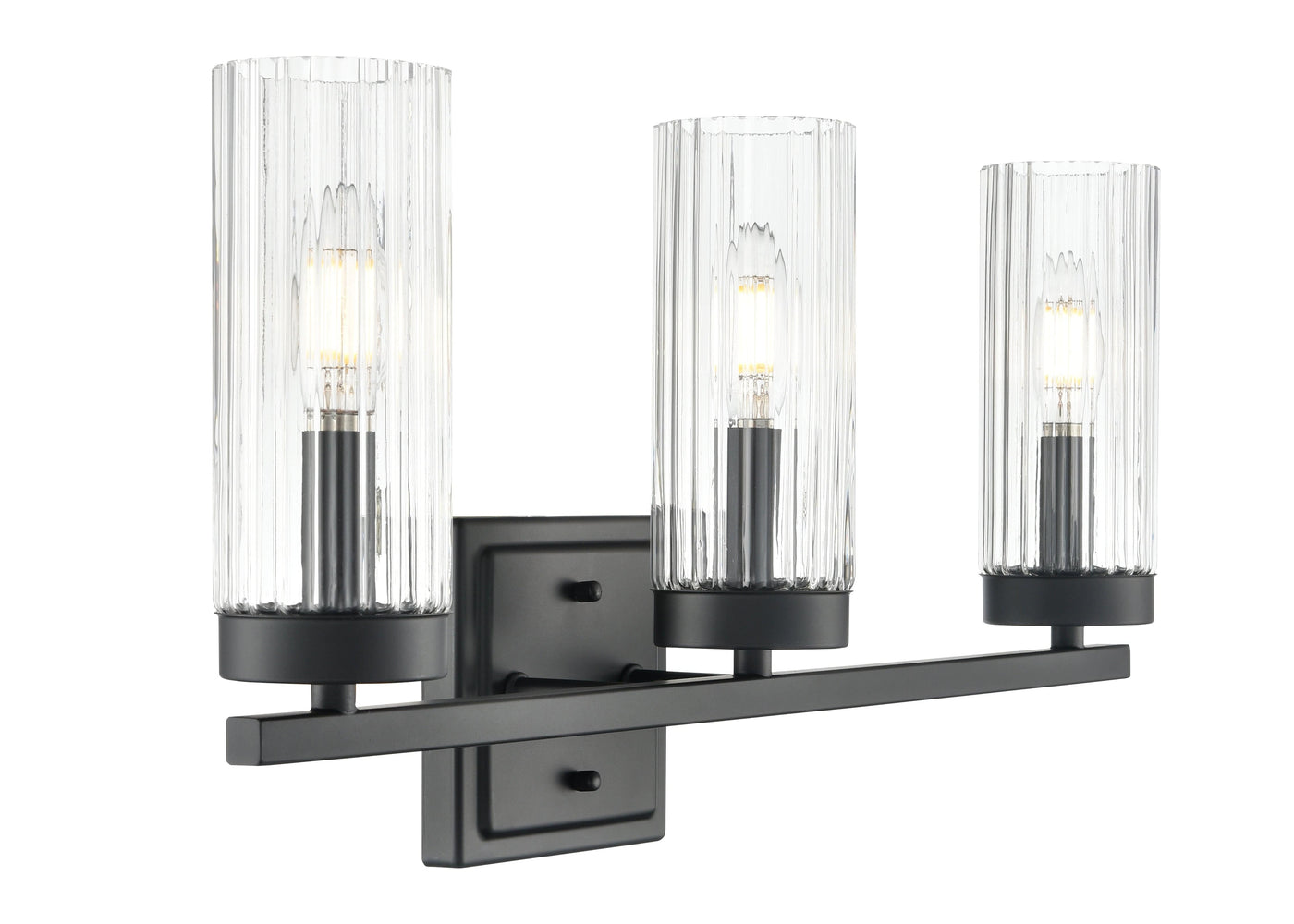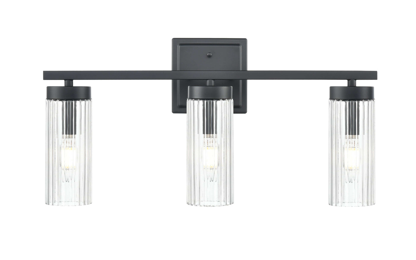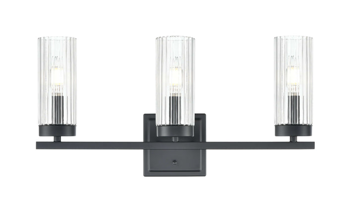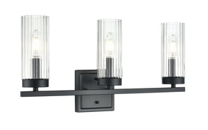 3 Lamps Iversen Vanity Light - Matte Black - Clear Reeded Glass - 21in. Wide