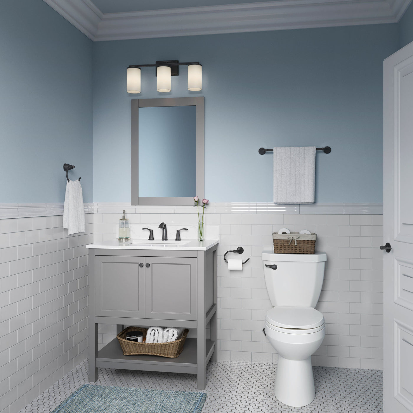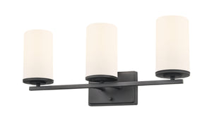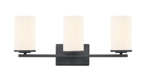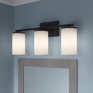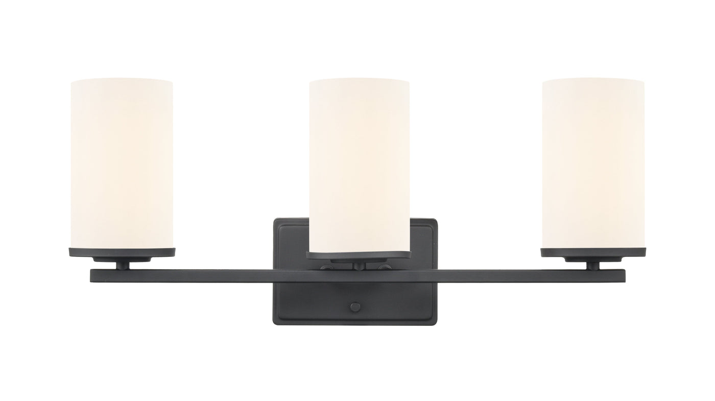 3 Lamps Verlana Vanity Light - Matte Black - Etched White Glass - 22in. Wide