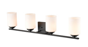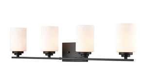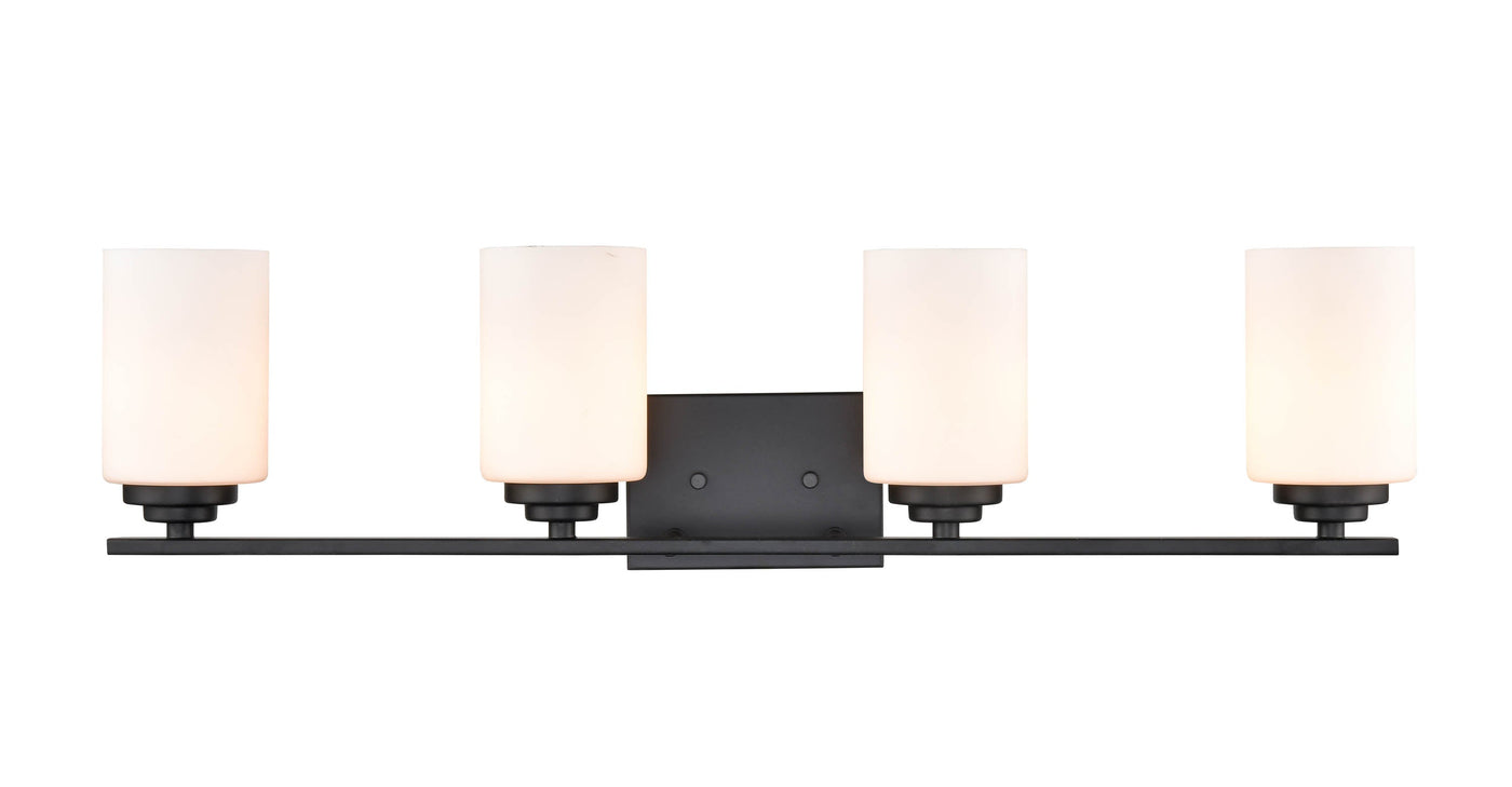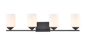 4 Lamps Durham Vanity Light - Matte Black - Etched White Glass - 31.125in. Wide