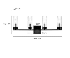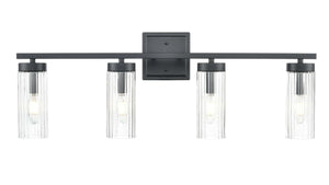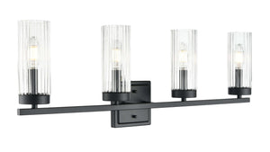 4 Lamps Iversen Vanity Light - Matte Black - Clear Reeded Glass - 29.75in. Wide