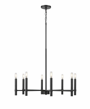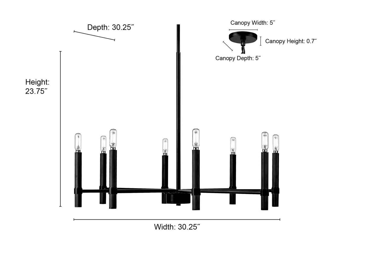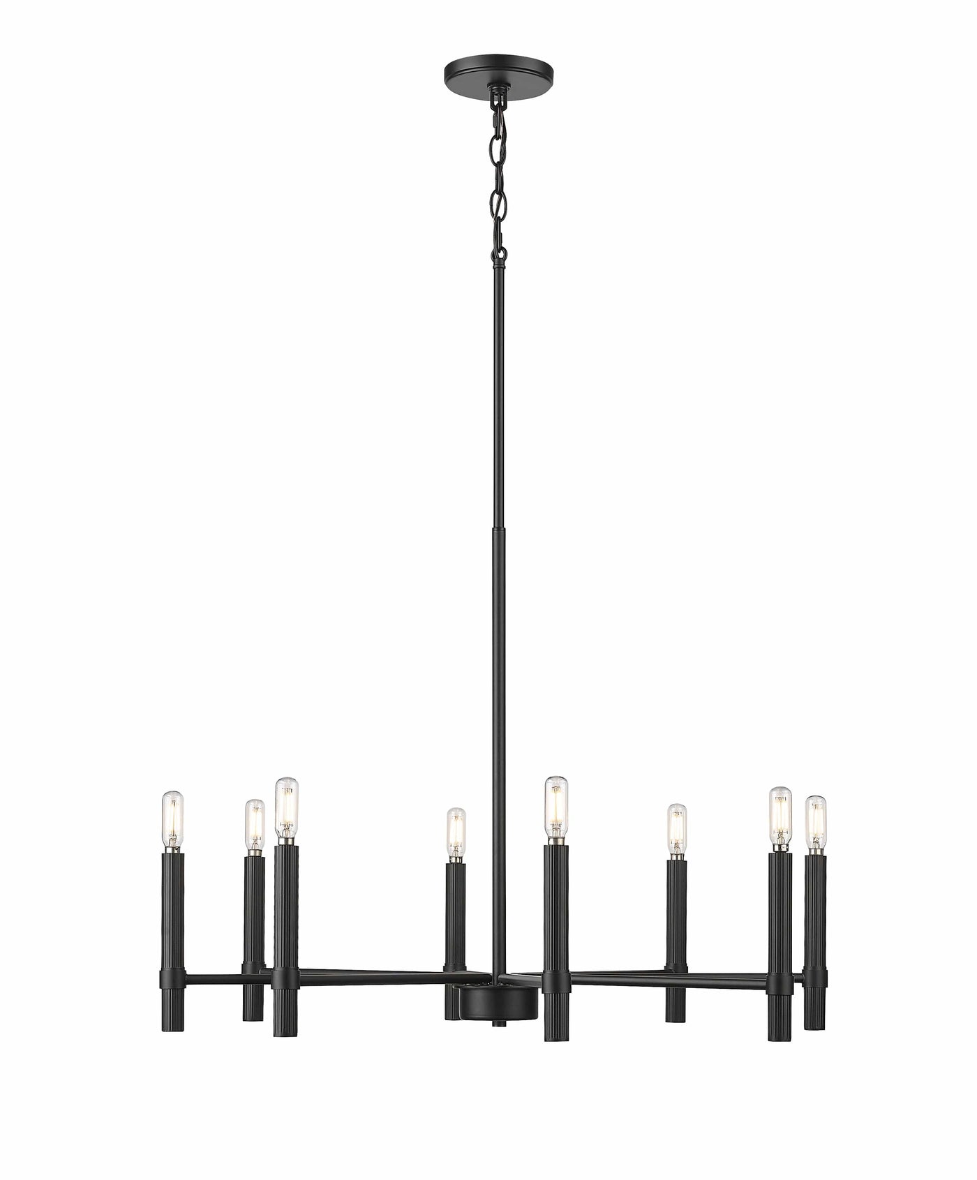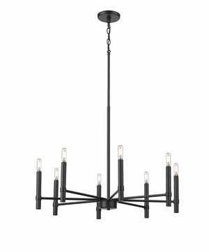 8 Lamps Skyva Chandelier - Matte Black - Glass - 30.25in Diameter - E12 Candelabra Base