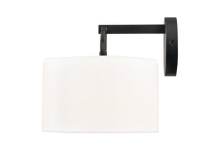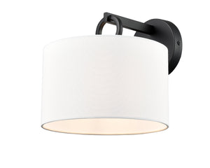 Braxstan Wall Sconce - Matte Black - White Linen Shade - 11.125in. Extension - E26 Medium Base