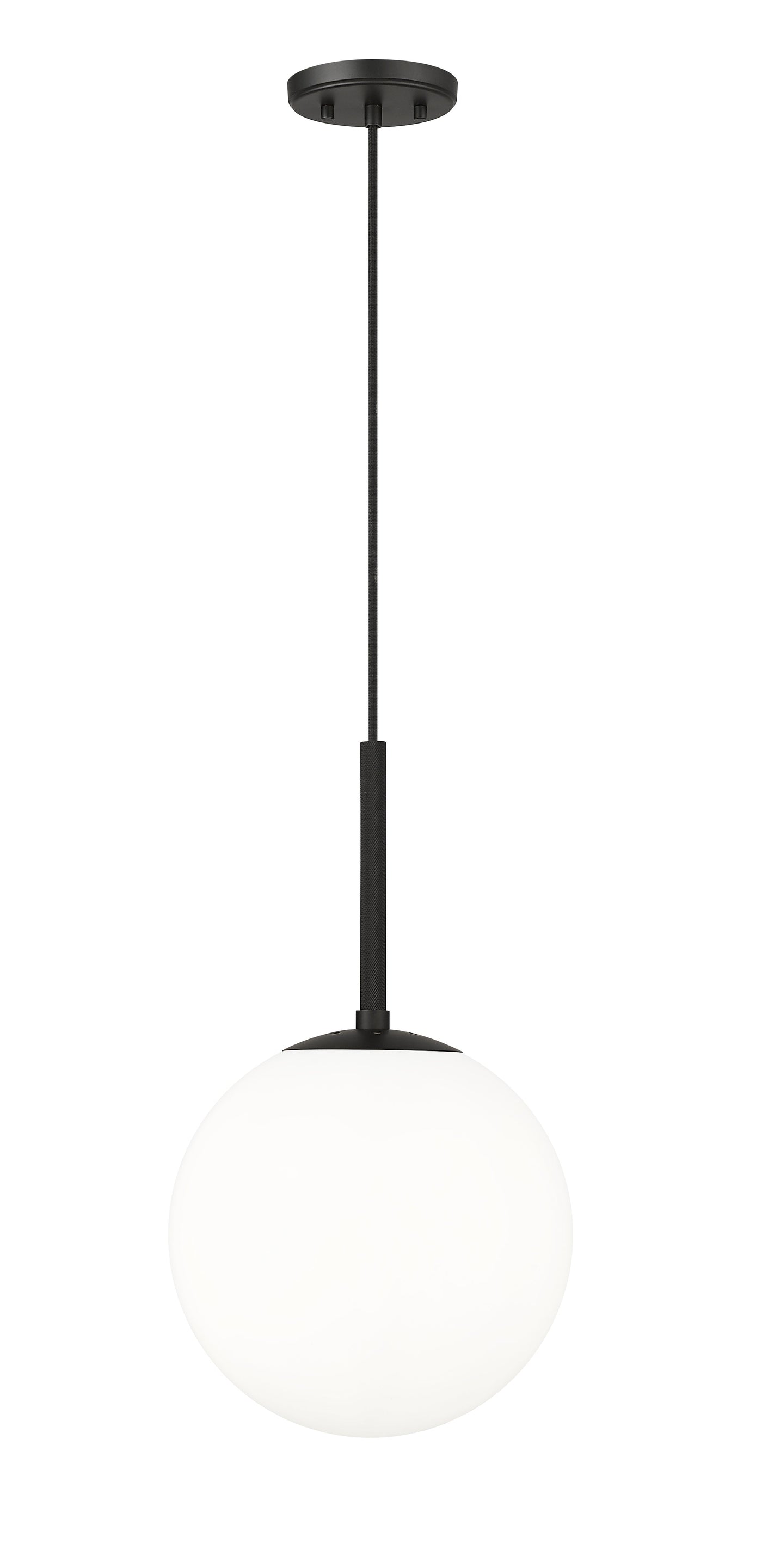 Kairo Pendant Fixture - Matte Black - Shiny Opal Glass - 12in. Diameter - E26 Medium Base