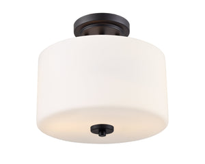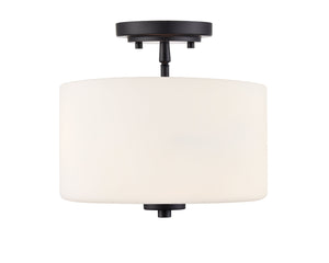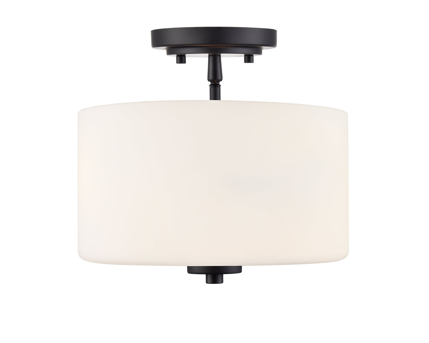 Verlana Semi-Flush Mount Fixture - Matte Black - Etched Opal Glass - 11in. Diameter - E26 Medium Base