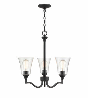 3 Lamps Caily Chandelier - Matte Black - Clear Seeded Glass - 21in Diameter - E26 Medium Base