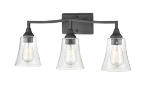 3 Lamps Caily Vanity Light - Matte Black - Clear Seeded Glass - 24in. Wide