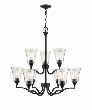 9 Lamps Caily Chandelier - Matte Black - Clear Seeded Glass - 31.5in Diameter - E26 Medium Base