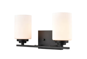 2 Lamps Durham Vanity Light - Matte Black - Etched White Glass - 14.25in. Wide