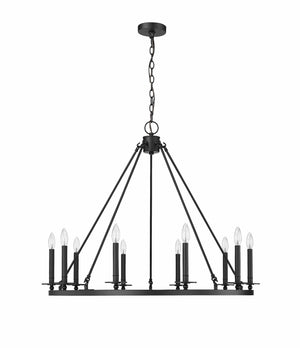 10 Lamps Florence Chandelier - Matte Black - 36in Diameter - E12 Candelabra Base
