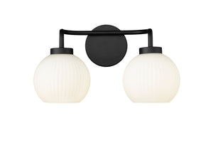 2 Lamps Oprah Vanity Light - Matte Black - Opal Ribbed Glass - 15in. Wide