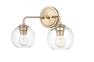 2 Lamps Bathroom Vanity Light - Modern Gold - Clear Glass - 16in. Wide