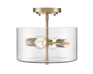 Verlana Semi-Flush Mount Fixture - Modern Gold - Clear Glass - 11in. Diameter - E26 Medium Base