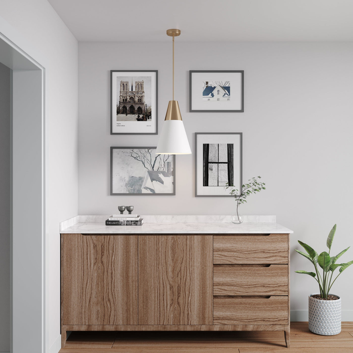 The Annos Collection of pendant lighting is a sophisticated take on quintessential Mid-Century design.A beautiful blend of metal finishes in either matte black and modern gold or matte white and modern gold creates the perfect effect for these beautiful showpieces. View More